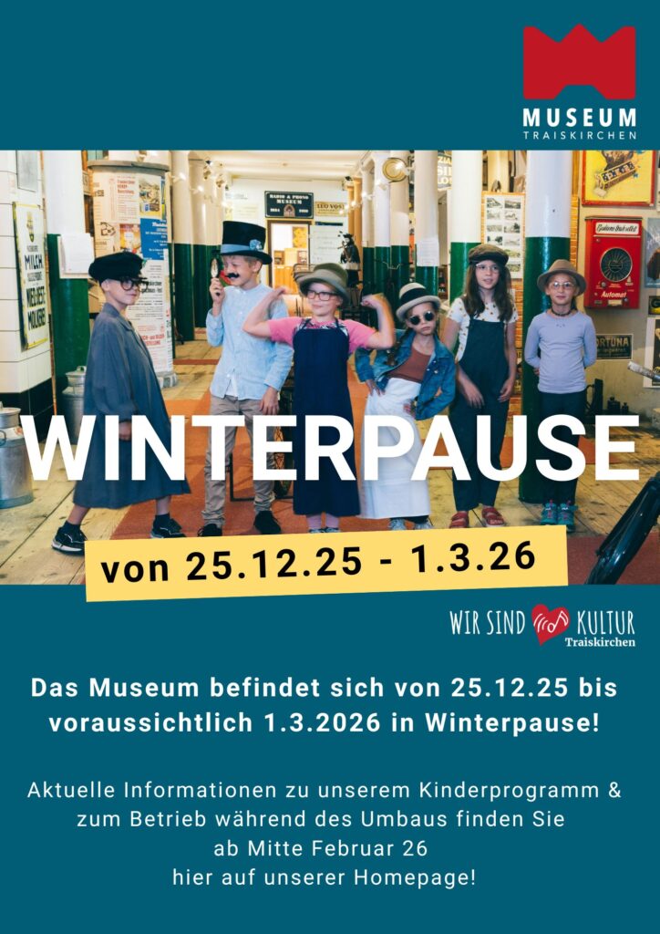 Das Museum Traiskirchen befindet sich von 25.12.2025 bis voraussichtlich 1.3. 2026 auf Winterpause. Aktuelle Informationen…