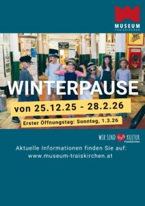 Das Museum befindet sich von 25.12.2025 bis 28.2. 2026 in Winterpause. Erster Öffnungstag ist der 1.3.2026. Aktuelle Informationen bezüglich des Kinderprogramms und den aktuellen Umbauarbeiten finden Sie ab Mitte Februar hier auf unserer Homepage. Es ist unser Anliegen den Museumsbetrieb während des Umbaus weiterhin aufrecht zu erhalten. Wir bitten um Ihr Verständnis, dass voraussichtlich zeitweise … Weiterlesen …