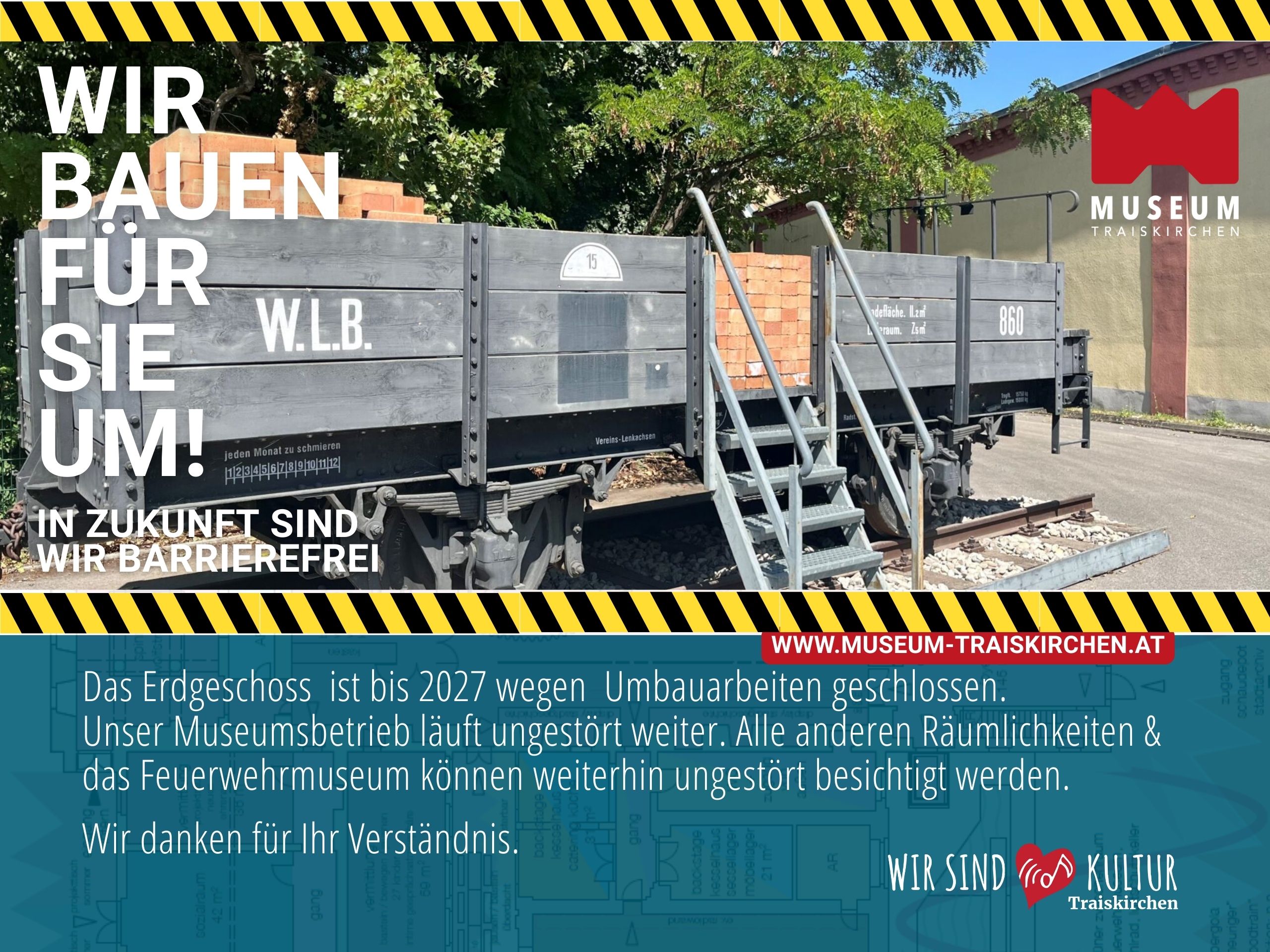 Übersiedelt ist inzwischen auch der Ziegelwaggon der Badner Bahn, der jahrelang den Bereich zwischen Hinterausgang Museum und Eingang zur Feuerwehr-Ausstellung schmückte. Dank der Hilfe des Bauhofs Traiskirchen und der Freiwilligen Feuerwehr Traiskirchen konnte dieses tonnenschwere Objekt relativ rasch an seinen neuen Platz gelangen. Am ehemaligen Aufstellungsort wird künftig der Aufzug errichtet, der das Museum Traiskirchen barrierefrei machen wird.